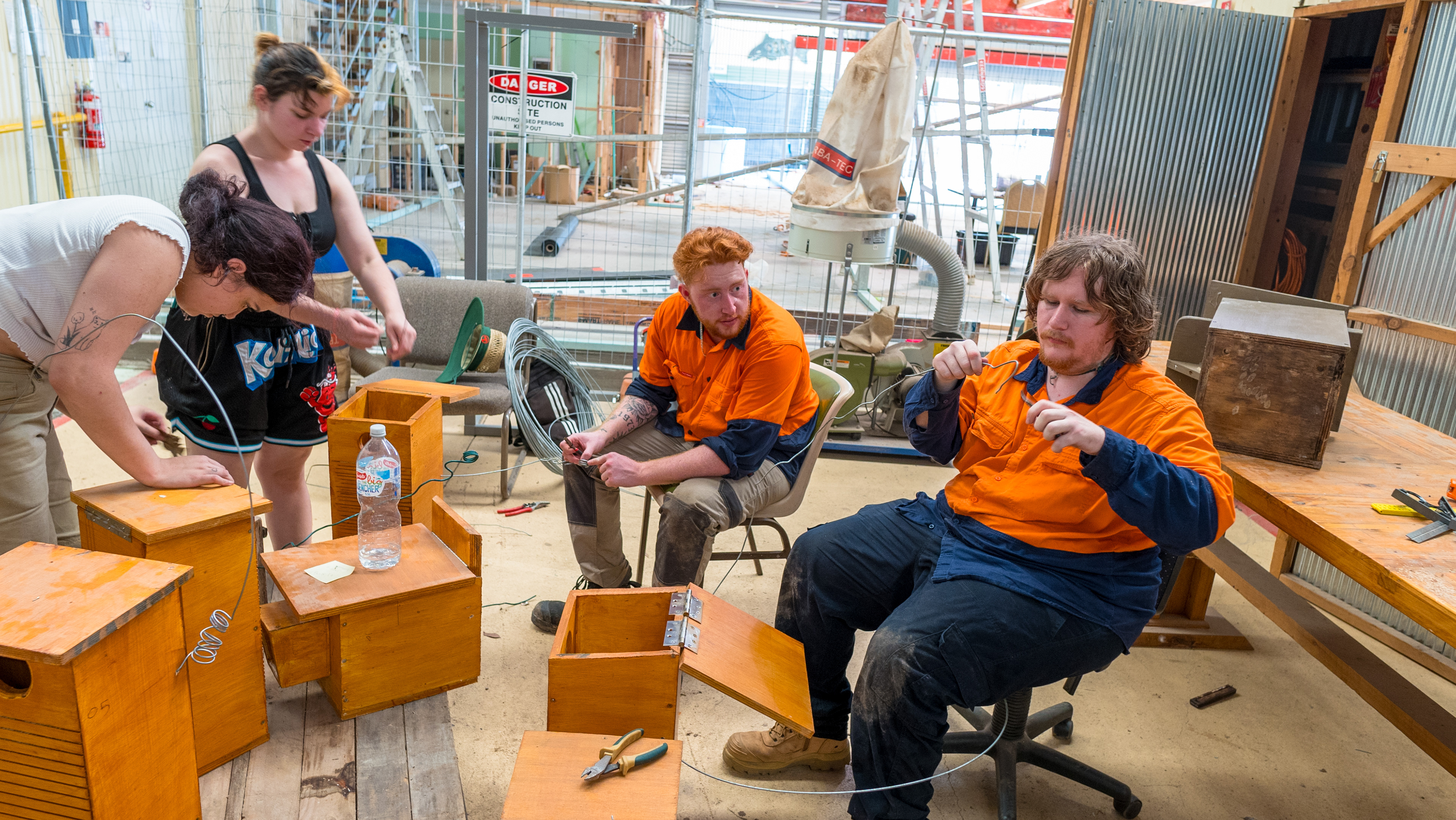 The project involved Construction trainees in the creation of multiple nest boxes for various fauna species. The lack of old established trees bearing hollows can impact a variety of native animal species from breeding and sheltering, restricting populations to certain areas.